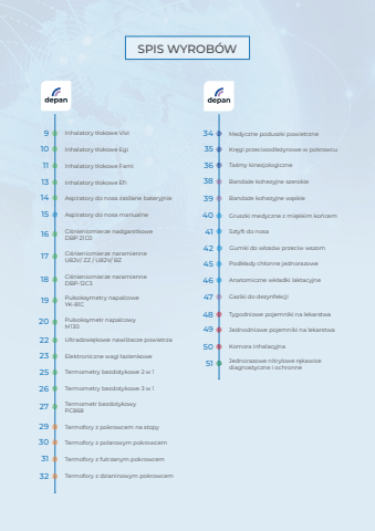 SPIS WYROB%u00d3WInhalatory t%u0142okowe ViviTermofory z pokrowcem na stopyTermometr bezdotykowyPC868Ci%u015bnieniomierze nadgarstkowe DBP 21C0Ta%u015bmy kinezjologiczne Inhalatory t%u0142okowe EfiTermofory z dzianinowym pokrowcemElektroniczne wagi %u0142azienkowe Gruszki medyczne z mi%u0119kkim ko%u0144cemTygodniowe pojemniki na lekarstwaInhalatory t%u0142okowe FamiTermofory z futrzanym pokrowcemPulsoksymetry napalcoweYK-81CUltradzwi%u0119kowe nawil%u017cacze powietrzaPulsoksymetr napalcowy M130Banda%u017ce kohezyjne w%u0105skieGaziki do dezynfekcjiAspiratory do nosa manualne Medyczne poduszki powietrzneKr%u0119gi przeciwodle%u017cynowe w pokrowcuTermometry bezdotykowe 3 w 1Podk%u0142ady ch%u0142onne jednorazoweKomora inhalacyjnaJednorazowe nitrylowe r%u0119kawicediagnostyczne i ochronneInhalatory t%u0142okowe EgiTermofory z polarowym pokrowcemCi%u015bnieniomierze naramienneU82V/ ZZ / U82V/ BZCi%u015bnieniomierze naramienneDBP-12C3Banda%u017ce kohezyjne szerokieAnatomiczne wk%u0142adki laktacyjneAspiratory do nosa zasilane bateryjnieTermometry bezdotykowe 2 w 1Sztyft do nosaGumki do w%u0142os%u00f3w przeciw wszomJednodniowe pojemniki na lekarstwa929271617183613 32234048113119222039471534352645505110 3038461425414249