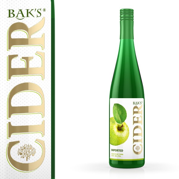 Cydr, przefermentowany sok z dojrzałych jabłek. Co warto o nim wiedzieć? Ma niewiele alkoholu i bardziej smakuje jak piwo niż wino. Może mieć różne smaki, jednak wyraźnie dominuje smak jabłek. Najlepiej smakuje zimne, prosto z lodówki. Np. takie jak to – w oprawie naszego autorstwa. Dla marki Bak’s Cider zaprojektowaliśmy logotyp, etykiety, opakowania zbiorcze i materiały POS.