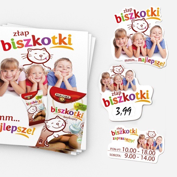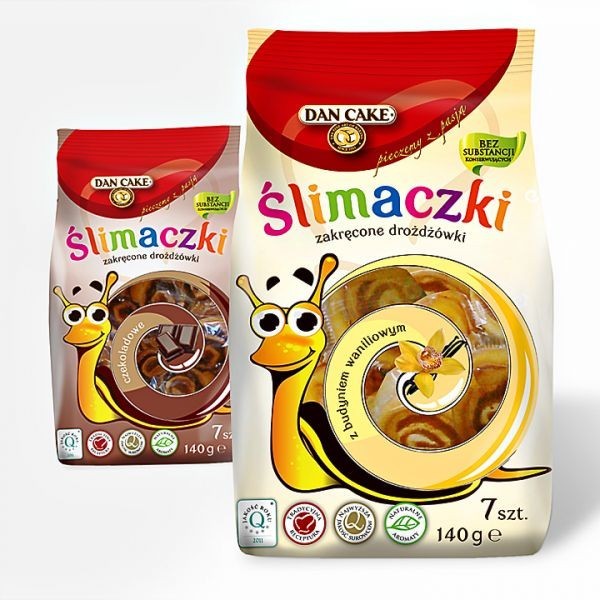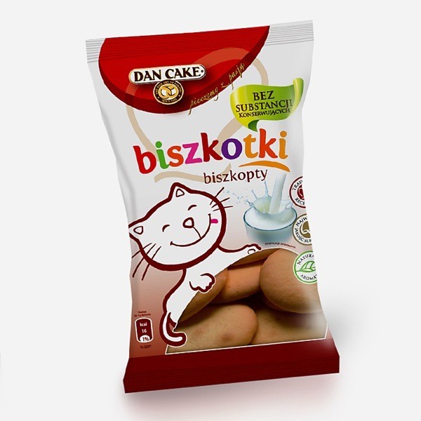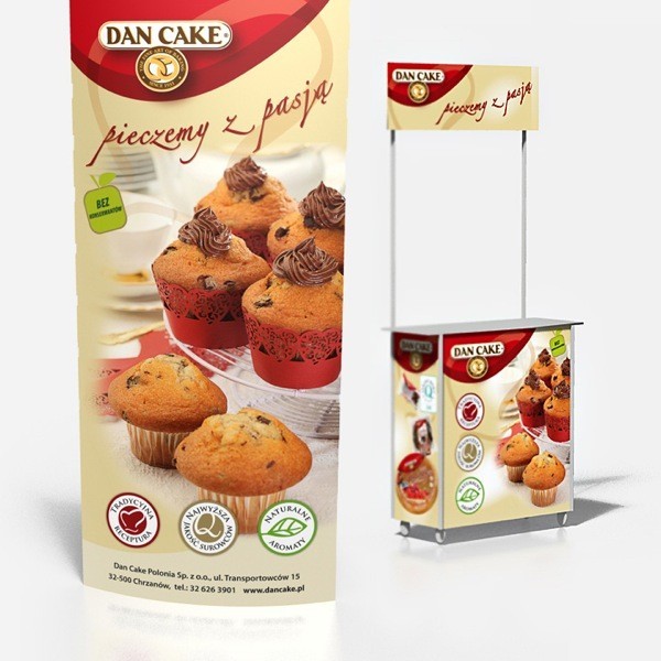 Współpraca od 2008 r. zaowocowała nie tylko powołaniem serii opakowań dla marki Dan Cake, lecz również opracowaniem materiałów wspierających sprzedaż (ulotki, woblery, plakaty, katalogi itd.). Powołaliśmy całkowicie nowy wizerunek marki Dan Cake, z charakterystyczną bordową tarczą.