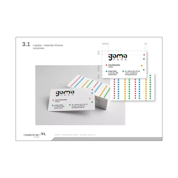 Czysta, geometryczna forma logotypu Gama Park zapewnia świetną rozpoznawalność, a połączenie figur geometrycznych z odpowiednią typografią symbolizuje różnorodność i prostotę, które są kluczowe dla koncepcji „gama możliwości”.