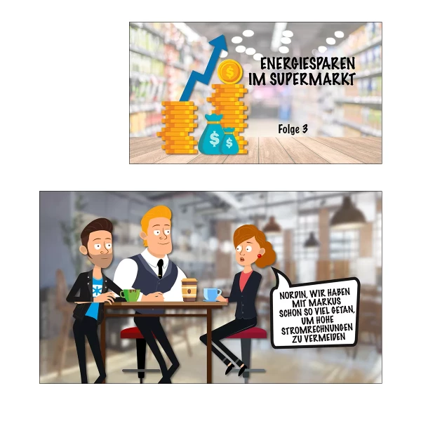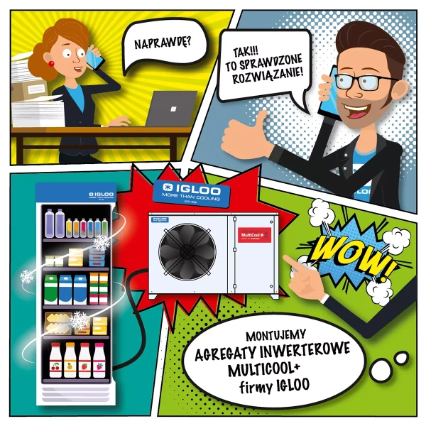 Jak zaoszczędzić wydatki na energię w sklepie, kawiarni lub hotelu poprzez urządzenia inverterowe Multicool? Opowiadamy to w krótkich filmach animowanych oraz komiksie, które mają na celu przybliżyć klientom poszczególne możliwości w walce z cenami prądu.